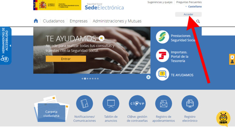 Paso 1: accede a la Sede Electrónica de la Seguridad Social