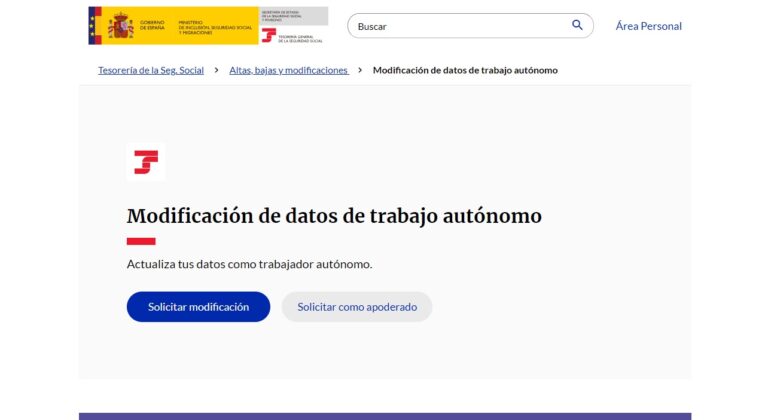 Paso 4: busca la sección de modificación de los datos del autónomo
